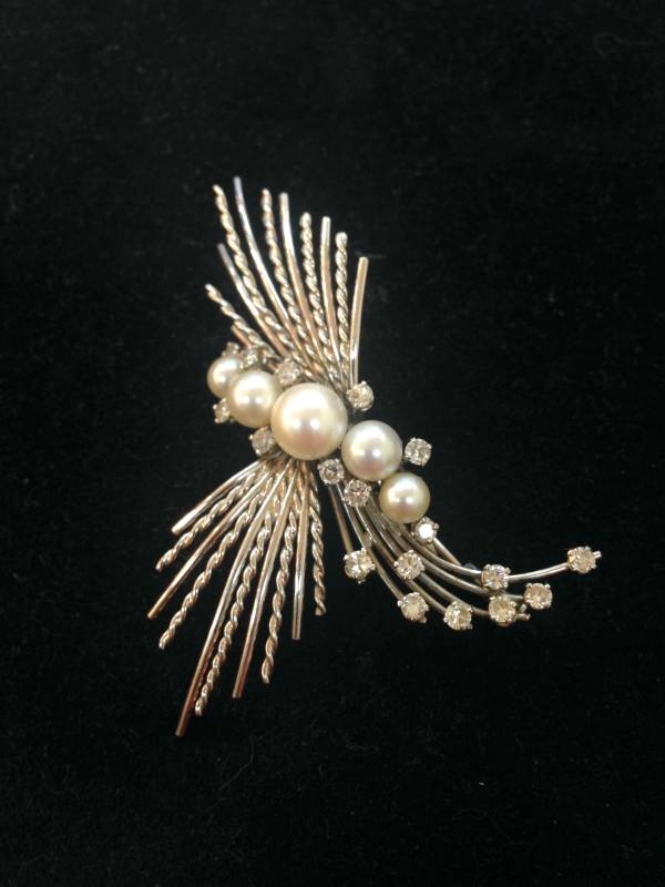 Broche "libellule" or blanc 750/1000ème, diamants et perles, Dépôt vente La Teste
