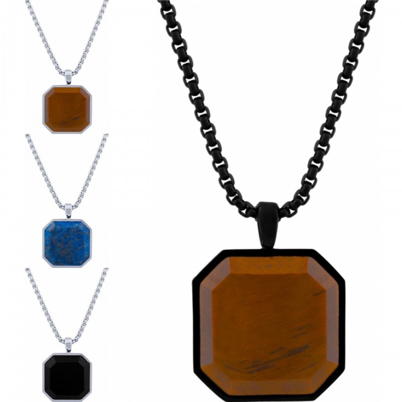 Ces pendentifs sont sertis avec de véritable pierres naturelles comme l'œil de tigre, le lapis lazuli ou l'onyx.